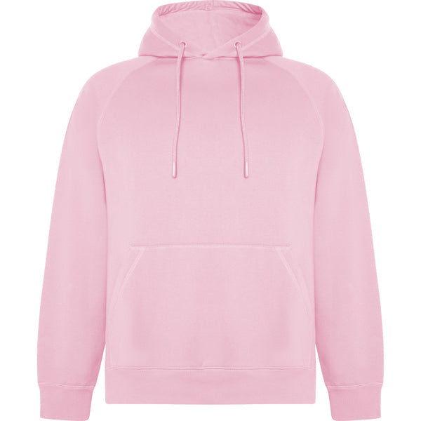 Moletom unissex com capuz forrado. Algodão orgânico penteado. Mangas raglã. Punhos e cós canelados 2x1 com elastano. Costuras seladas no mesmo tecido. Cordão plano no capuz. Ilhós bordados combinando. Certificado OCS e GRS.